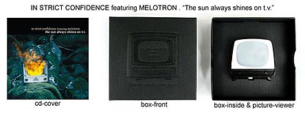 Определенно, одним из самых необычных релизов будет совместная работа In Strict Confidence и Melotron - маленький бокс с классической вещью группы А-НА "Тhe sun always shines on TV".