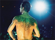 так как она попадает на шов, по которому не печатают изображения, так как они не пропечатываются. Близко ко шву тоже не печатают, по тем же причинам. А при печати на внешней стороне теряется весь смысл идеи, так как конечная работа не будет на 100% совпадать с реальным раположением тату на теле Дейва. |