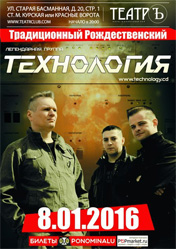 8 января группа "Технология" приглашает всех на свой традиционный Рождественский концерт, который пройдет в московском клубе "Театръ"!