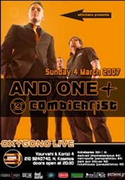4 марта 2007 в Афинах в Греции выступят два самых горячих EBM-коллектива And One и Combichrist. Они отыграют в Oxygono Live (Vourvahi & Korizi 4, N. Kosmos). Выпущенный несколько месяцев назад, альбом And One "Bodypop" вот уже три месяца остается номером один в греческих альтернативных чартах. Это выступление подготовлено командой промоутеров Elfentanz Festival, которые вот уже более 5 лет организовывают в Греции концерты таких команд как: Wolfsheim, Deine Lakaien, VNV Nation, Covenant, In The Nursery, And Also The Trees, Project Pitchfork, Das Ich, Mesh, Rotersand, SITD, Suicide Commando, Soman, Elusive, Trisomie 21, Ivory Frequency, PreEmptive Strike и так далее. Билеты на шоу будут стоить 35 евро и заказать их можно сделав заявку по следующему адресу: dreamhouse94@yahoo.com. |